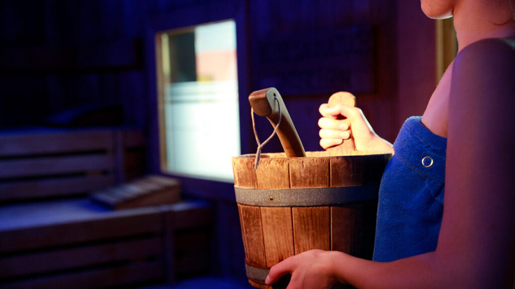 Hier befindet sich neben einer original russischen Banja, die sehr heiße Erdwallsauna und eine große Aufgusssauna, in der mehrmals täglich vielfältige Aufgüsse stattfinden.